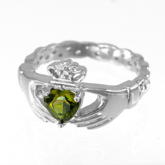 Silver Claddagh Ring - Peridot CZ Birthstone Ring - Celtic Band Irish Claddagh Ring