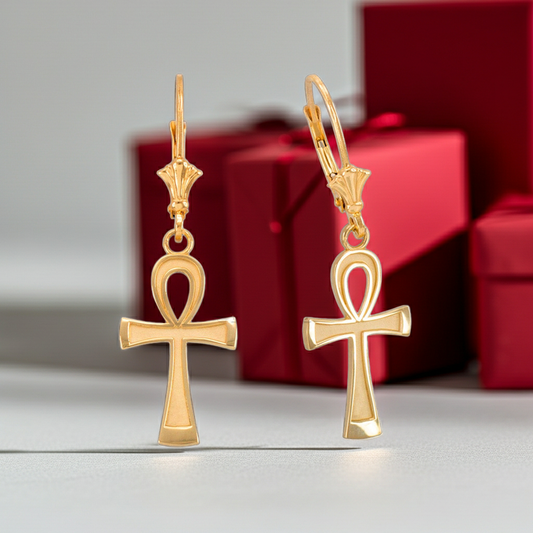 14K Gold Egyptian Ankh Cross Earrings (yellow, white, rose gold)