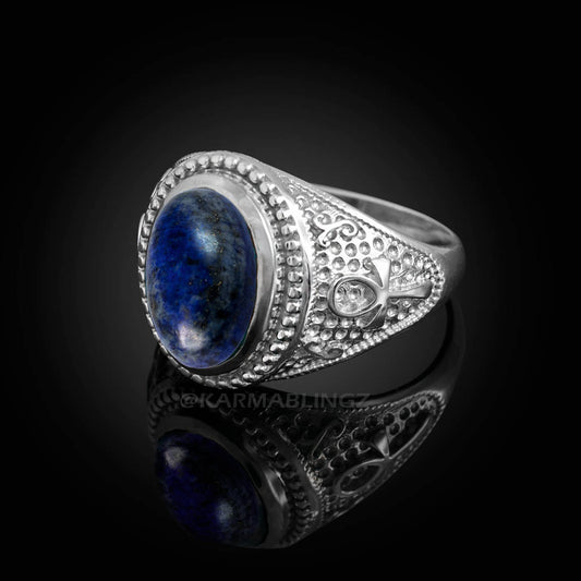 Sterling Silver Egyptian Ankh Cross Lapis Lazuli Gemstone Ring