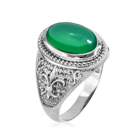 Sterling Silver Fleur De Lis Green Onyx Gemstone Statement Ring