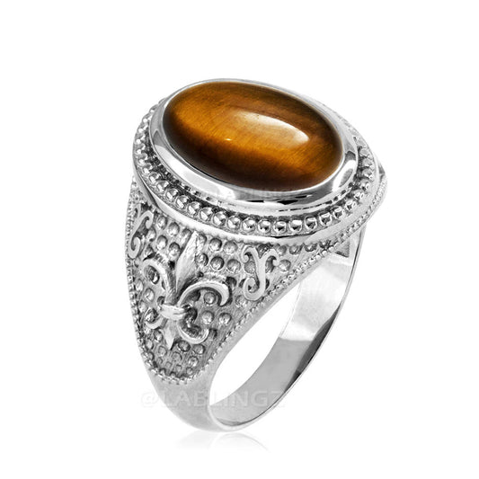 Sterling Silver Fleur De Lis Tiger Eye Gemstone Statement Ring