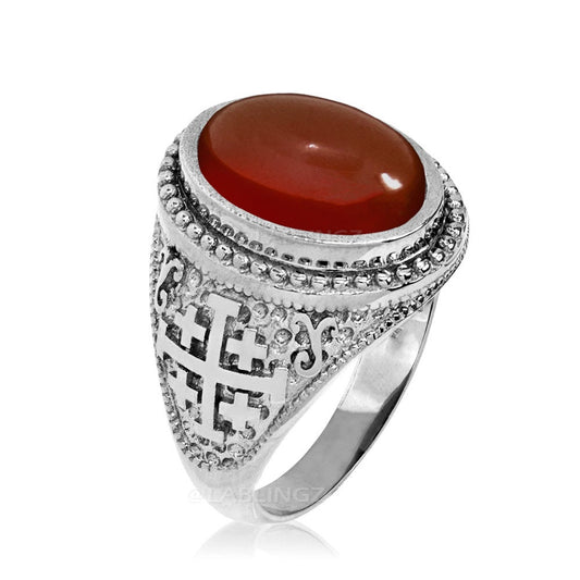 Sterling Silver Jerusalem Cross Red Onyx Gemstone Ring