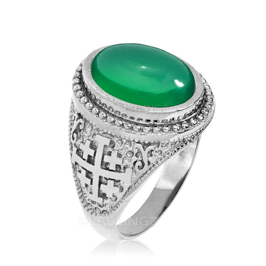 Sterling Silver Jerusalem Cross Green Onyx Gemstone Ring