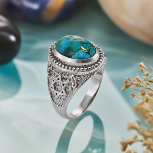 Sterling Silver Star of David Blue Copper Turquoise Jewish Statement Ring