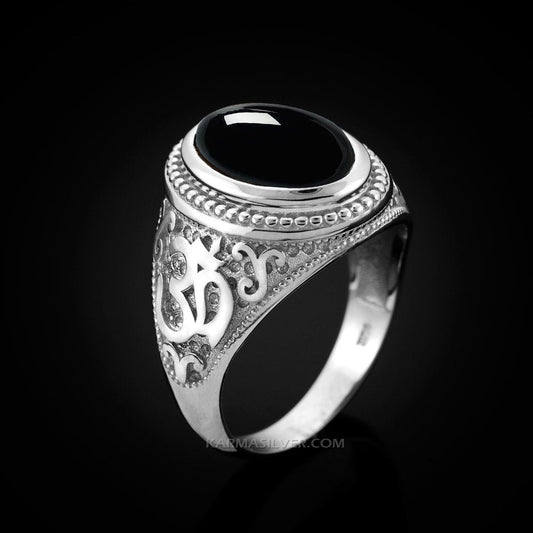 Sterling Silver Om Black Onyx Oval Cabochon Ring