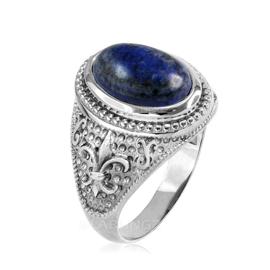 Sterling Silver Fleur De Lis Lapis Lazuli Gemstone Statement Ring