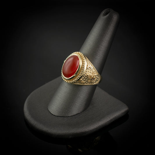 Gold Masonic Red Onyx Statement Ring