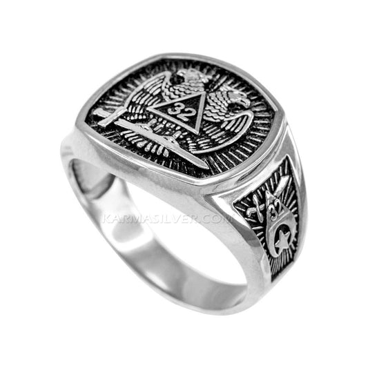 • Oxidized Sterling Silver Scottish Rite 32nd Degree Masonic Ring - Mens Silver Masonic Ring Karma Blingz