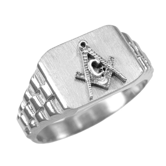 Mens Sterling Silver Square Masonic Ring