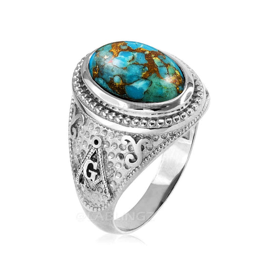Sterling Silver Masonic Ring with Blue Copper Turquoise
