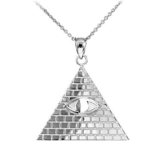 Sterling Silver All-Seeing-Eye of Providence Illuminati Pyramid Charm Necklace