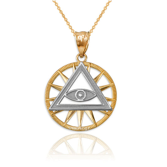 Gold Illuminati All-Seeing-Eye Pendant Necklace (yellow, white, rose gold, 10k, 14k)