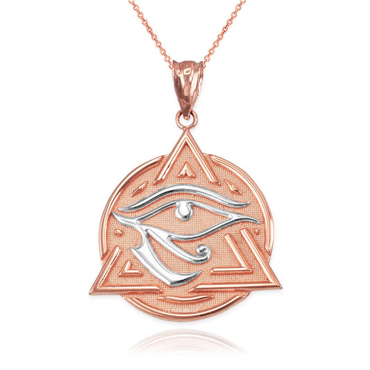 Gold Eye of Horus Illuminati Pendant Necklace (yellow, white, rose gold, 2-tone, 10K, 14K)