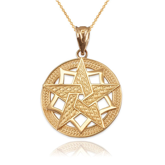 • Gold Pentagram Medallion Pendant Necklace (10K, 14K, yellow, white, rose gold) Karma Blingz