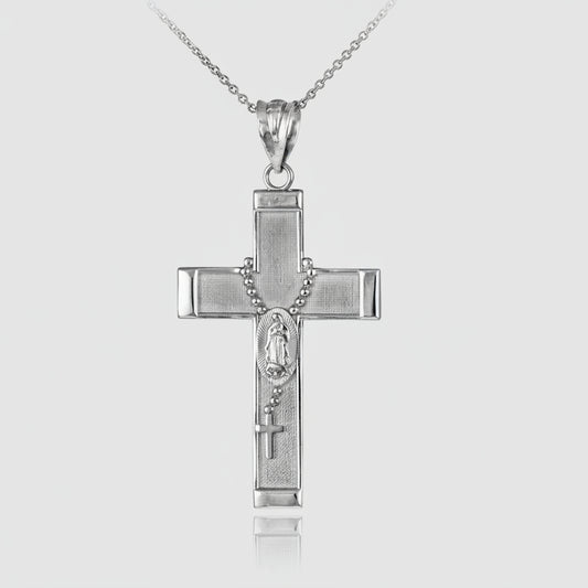 Sterling Silver Guadalupe Cross Rosary Pendant Necklace