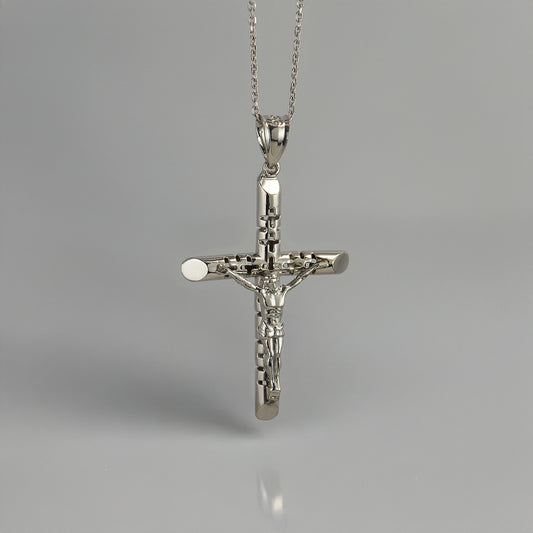 Sterling Silver Crucifix Tube Cross Pendant Necklace