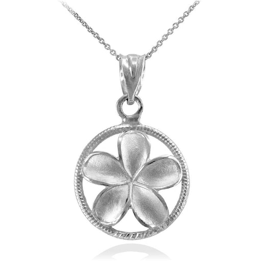 Sterling Silver Hawaiian Plumeria Flower Pendant Necklace