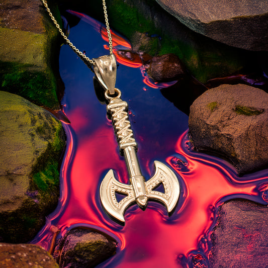 Gold Viking Tomahawk Axe Pendant Necklace (10k, 14k, yellow, white, rose gold)