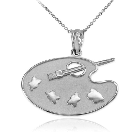 Satin Silver Painter Art Palette Pendant Necklace