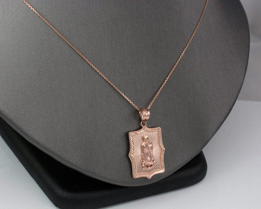 Our Lady of Guadalupe Rose Gold DC Pendant Necklace (10k, 14k)