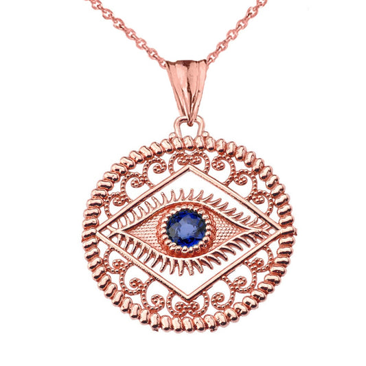 Gold Filigree Evil Eye Blue CZ Medallion Pendant Necklace (yellow, white, rose gold)