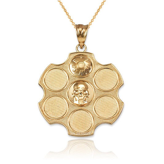 Gold Russian Roulette Pendant Necklace (yellow, white, rose gold, 10k, 14k)