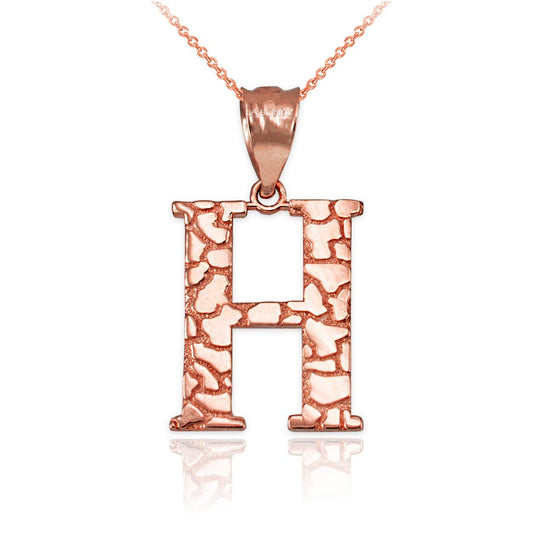 Gold Nugget Alphabet Initial Letter "H" Pendant Necklace (yellow, white, rose gold)