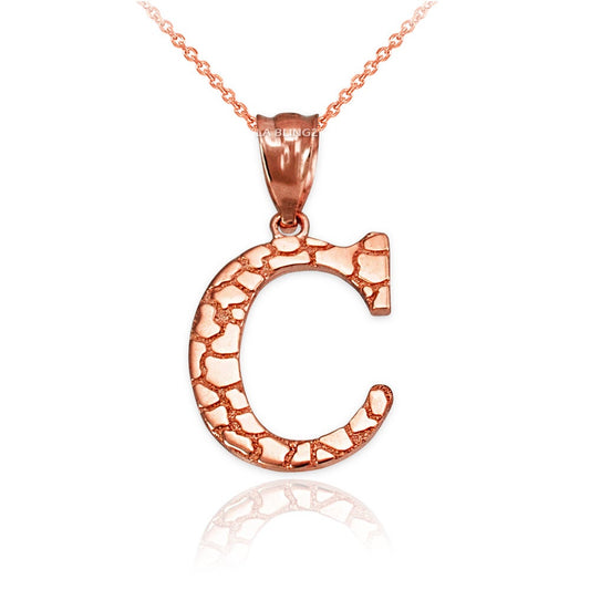 Gold Nugget Alphabet Initial Letter "C" Pendant Necklace (yellow, white, rose gold)