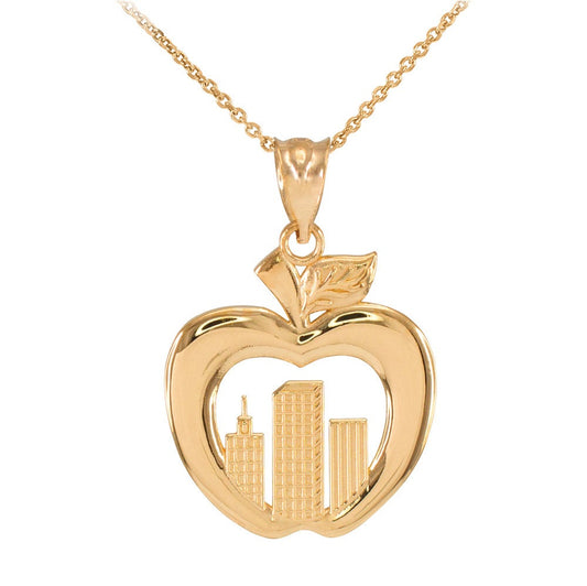 Gold New York City Big Apple Pendant Necklace (14K, 10K, yellow, white, rose gold)