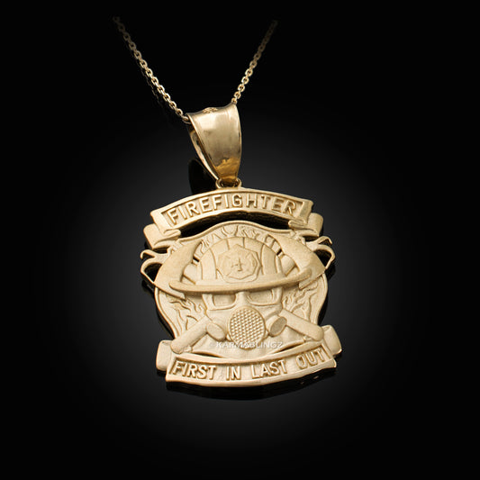 Satin Gold Firefighter Pendant Necklace (14K, 10K, yellow, white, rose gold)
