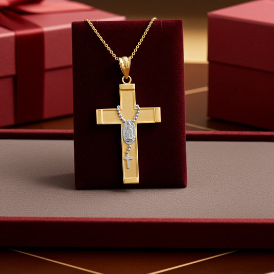Gold Guadalupe Cross Lady Guadalupe Rosary Pendant Necklace (10k, 14k, yellow, white, rose gold, two-tone gold)