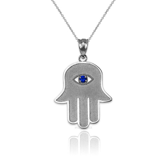 Gold Hamsa Blue CZ Evil Eye Pendant Necklace (10k, 14k, yellow, white, rose gold)