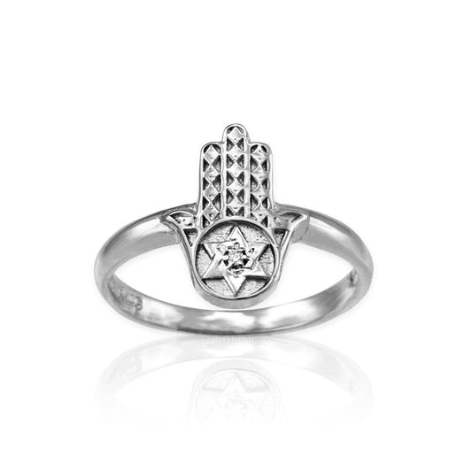Sterling Silver Hamsa Diamond Star of David Ring