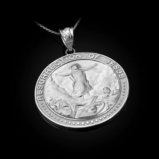 Gold Resurrection of Jesus Round Medallion Pendant Necklace (yellow, white, rose gold, 10k, 14k)
