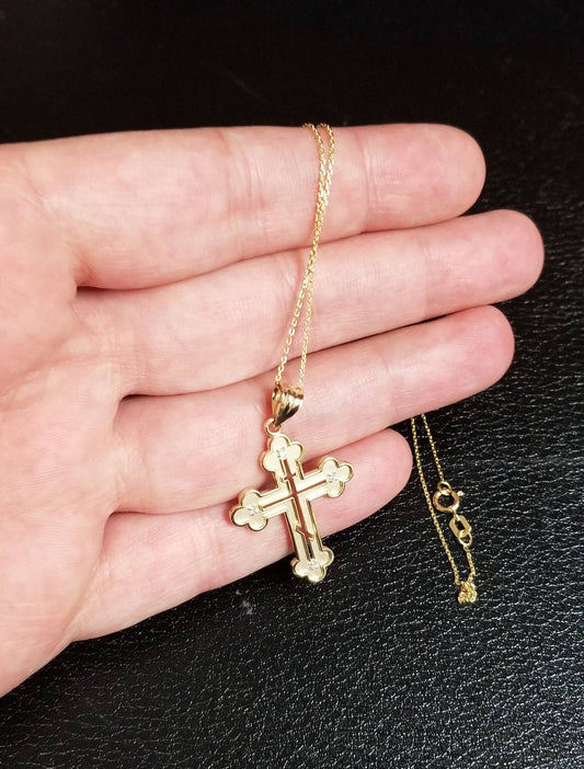 Gold Russian Eastern Orthodox Diamond Cross Pendant Necklace (yellow, white, rose gold)