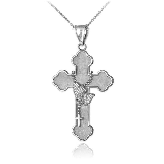 Sterling Silver Rosary Cross Prayer Pendant Necklace