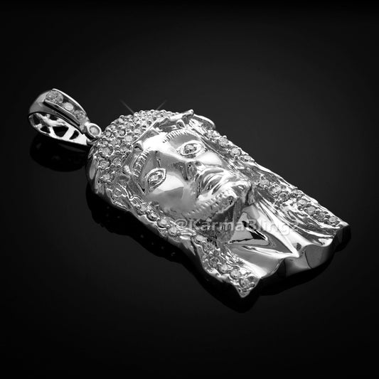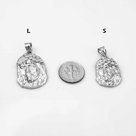 Sterling Silver Jesus Face CZ Pendant (small, large)