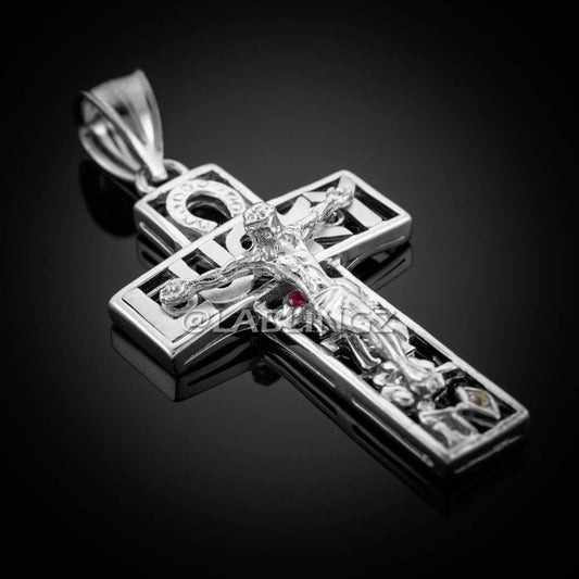 Sterling Silver CZ Jesus Crucifix Mens Pendant