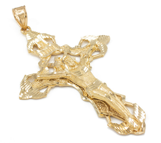 Solid Gold Mens Large Crucifix Cross Pendant (yellow, white, rose gold, 10k, 14k)