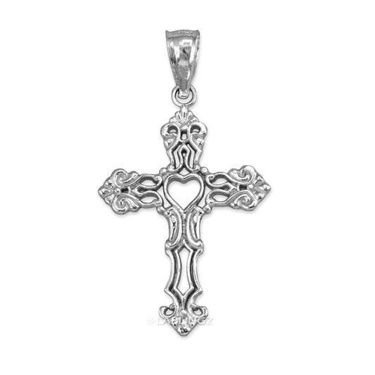 Sterling Silver Open Heart Cross Charm Pendant Necklace