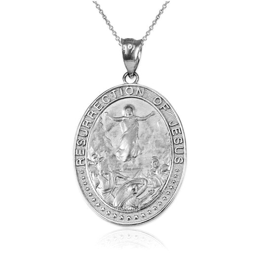 Sterling Silver Resurrection of Jesus Oval Medallion Pendant Necklace