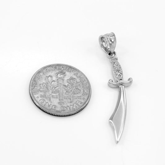Sterling Silver Islamic Scimitar Sword CZ Pendant Necklace