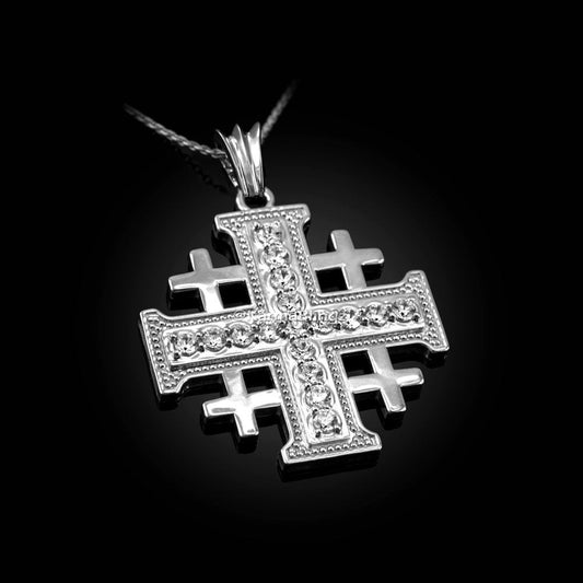 Sterling Silver Jerusalem Cross CZ Pendant Necklace
