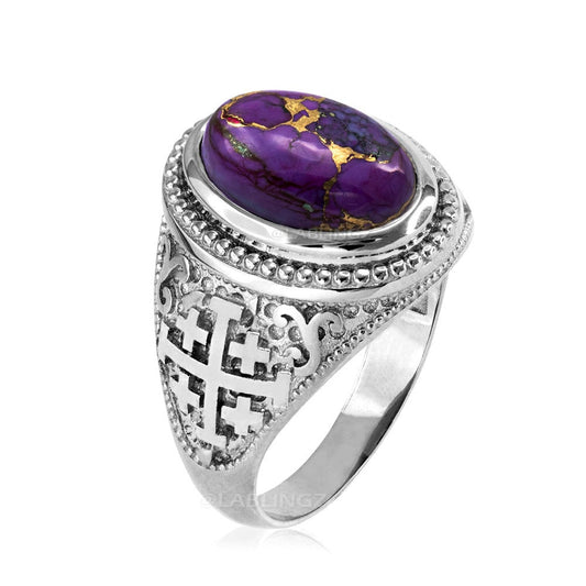 Sterling Silver Jerusalem Cross Purple Copper Turquoise Ring