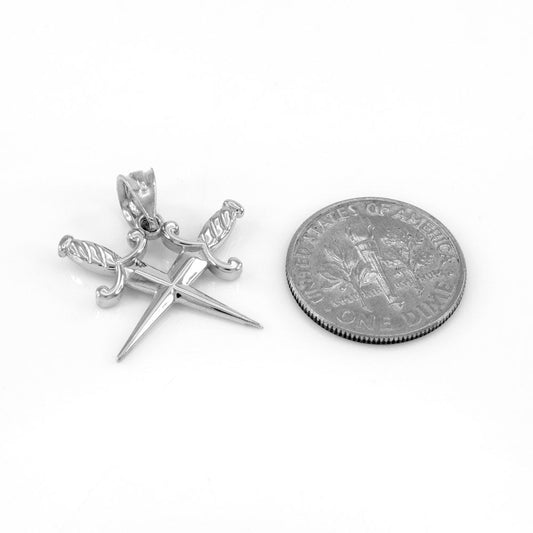 Sterling Silver Crossing Dagger Knives Charm Pendant Necklace