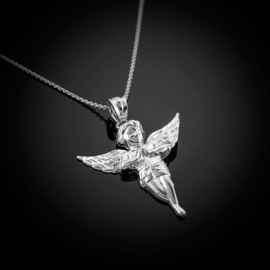 Polished Gold Angel Pendant Necklace (yellow, white, rose gold, 10k, 14k)