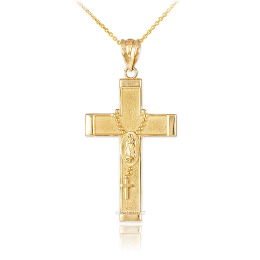 Gold Guadalupe Cross Rosary Pendant Necklace (10k, 14k, yellow, white, rose gold, two-tone gold)
