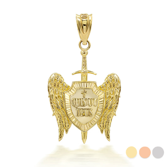 Saint Michael Sword and Shield "Quis ut Deus" Gold Pendant Necklace
