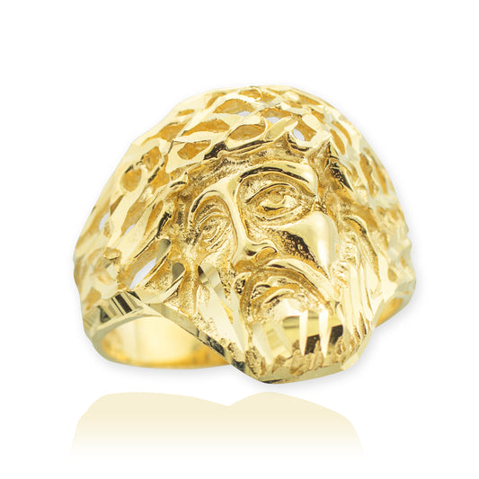 Yellow Gold Jesus Face Diamond Cut Ring