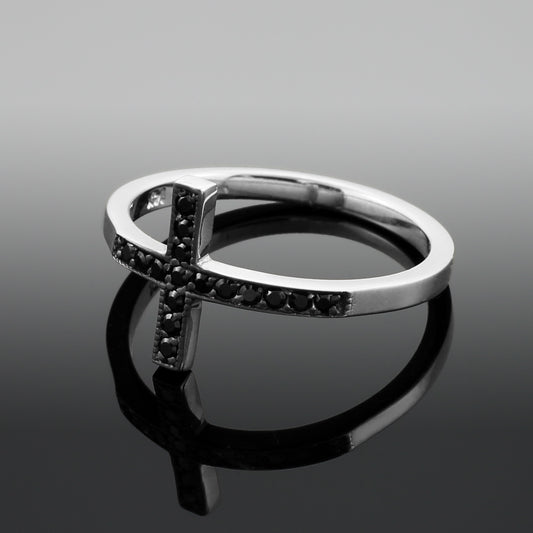 Black Diamond Sideways Cross Ladies Gold Ring (yellow, white, rose gold, 10K, 14K)